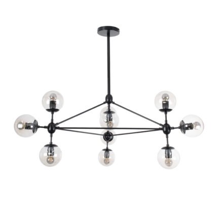 GLOBOSTAR® SENTINEL 01636 Μοντέρνο Φωτιστικό Οροφής με Ντουί 10 x E27 AC 220-240V IP20 – Μαύρο & Διάφανο – Μ105 x Π80 x Υ90cm