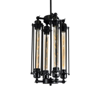 GLOBOSTAR® TUBING 01013 Vintage Κρεμαστό Φωτιστικό Οροφής με Ντουί 4 x E27 AC 220-240V IP20 – Μαύρο – Μ27 x Π27 x Y47cm