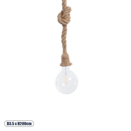 GLOBOSTAR® ROPE 01018 Boho Κρεμαστό Φωτιστικό Οροφής με Ντουί 1 x E27 AC 220-240V IP20 – Μπεζ – Μ3.5 x Π3.5 x Υ200cm