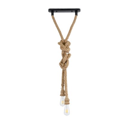 GLOBOSTAR® ROPE 01019 Boho Κρεμαστό Φωτιστικό Οροφής με Ντουί 2 x E27 AC 220-240V IP20 – Μπεζ – Μ38 x Π3.5 x Υ200cm