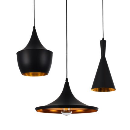 GLOBOSTAR® ROCKFORD 01287 Μοντέρνο Κρεμαστό Φωτιστικό Οροφής με Ντουί 3 x E27 AC 220-240V IP20 – Μαύρο & Χρυσό – Μ86 x Π86 x Υ30cm