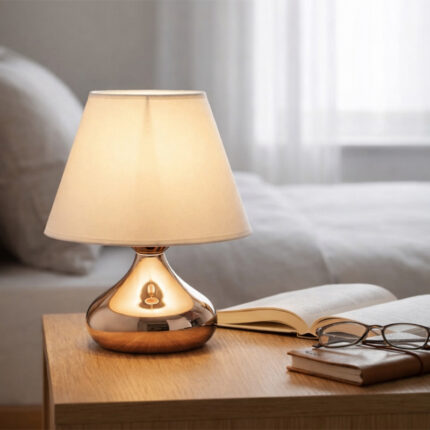Φωτιστικό επιτραπέζιο Jules Megapap ύφασμα Pvc χρώμα λευκό/ασημί 22x17x37εκ.