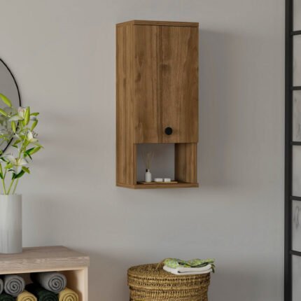 Original price was: 70,00 €.59,00 €Η τρέχουσα τιμή είναι: 59,00 €.Ντουλάπι μπάνιου επιτοίχιο Ela Megapap χρώμα καρυδί 60x15x87εκ.
