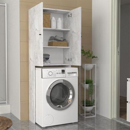 Original price was: 107,00 €.89,00 €Η τρέχουσα τιμή είναι: 89,00 €.Έπιπλο πλυντηρίου Romme Megapap χρώμα λευκό εφέ μαρμάρου 65×27,1×180εκ.