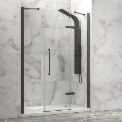 583,00 €Καμπίνα από τοίχο σε τοίχο με διάφανο κρύσταλλο TINOS 600 Black KARAG 130x200cm