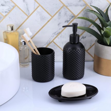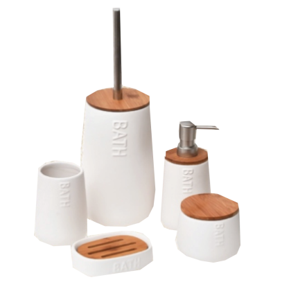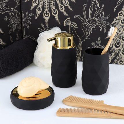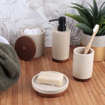 Σετ 4 τεμάχια ντισπένσερ – θήκη οδ/ρτσας – σαπουνοθήκη βαμβακοθήκη polyresin