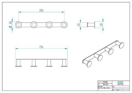 302.51.22 Πετσετοθήκη – Μπάρα Κάθετης Προβολής Omicron 44x350x44 by Verdi