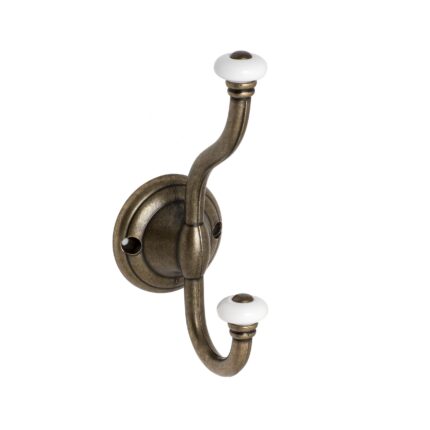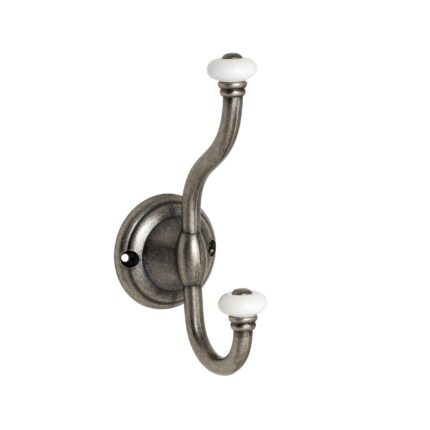 Roline 403 Κρεμάστρα από Ζάμακ & Πορσελάνη Old Silver-Λευκή 160x65mm