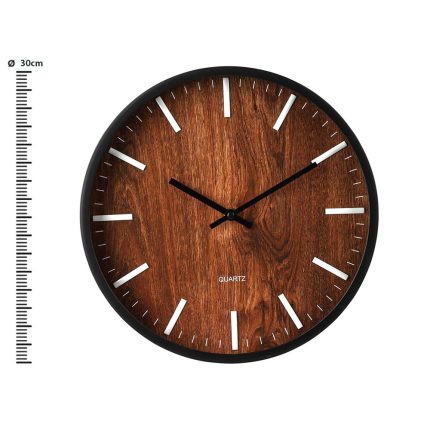 Ρολόι τοίχου Αναλογικό, διαμέτρου 30cm, Καφέ/Μαύρο