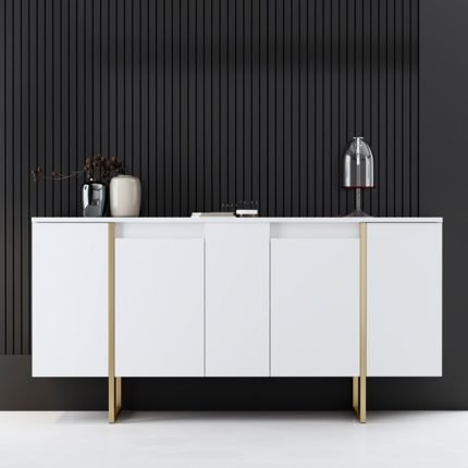 Original price was: 250,00 €.210,00 €Η τρέχουσα τιμή είναι: 210,00 €.Μπουφές Luxe Megapap χρώμα λευκό – χρυσό 160x35x80εκ.