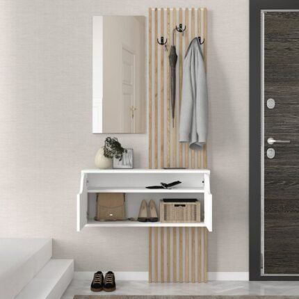 Original price was: 182,00 €.149,00 €Η τρέχουσα τιμή είναι: 149,00 €.Έπιπλο εισόδου Raynold Megapap χρώμα φυσικό οξιάς – λευκό 100x30x180εκ.