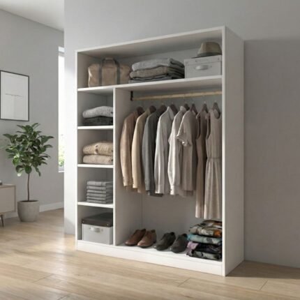 Ντουλάπα ρούχων ανοιχτή – Έπιπλο εισόδου Sandra Megapap χρώμα λευκό 120x40x150εκ.