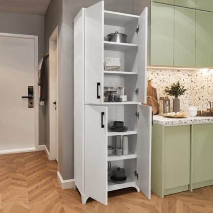 Original price was: 238,00 €.199,00 €Η τρέχουσα τιμή είναι: 199,00 €.Έπιπλο κουζίνας Potter 4 Megapap χρώμα λευκό – rota oak 120x40x196,1εκ.