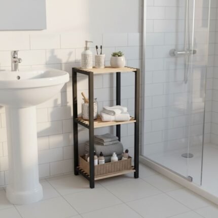 Original price was: 97,50 €.79,90 €Η τρέχουσα τιμή είναι: 79,90 €.Ραφιέρα δαπέδου – Κομοδίνο ξύλινο – πλαστικό χρώμα φυσικό – μαύρο 37x29x79εκ.