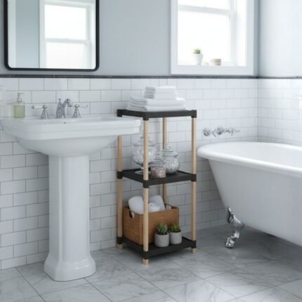 Original price was: 17,80 €.14,90 €Η τρέχουσα τιμή είναι: 14,90 €.Ραφιέρα δαπέδου πλαστική – ξύλινη χρώμα φυσικό – μαύρο 28x25x72εκ.