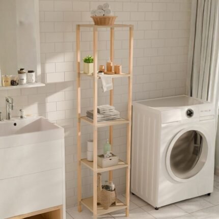 Original price was: 15,90 €.12,90 €Η τρέχουσα τιμή είναι: 12,90 €.Ραφιέρα δαπέδου ξύλινη – πλαστική χρώμα φυσικό – μπεζ 38x30x116εκ.