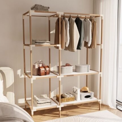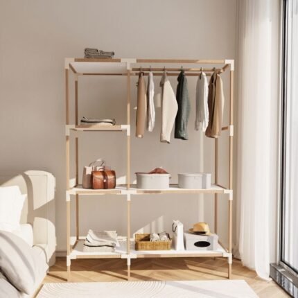 Original price was: 159,00 €.129,00 €Η τρέχουσα τιμή είναι: 129,00 €.Ντουλάπα ρούχων ανοιχτή – Έπιπλο εισόδου ξύλινο – πλαστικό χρώμα φυσικό – μπεζ 117x47x155εκ.