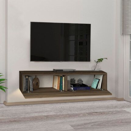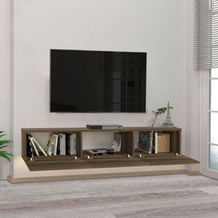 Original price was: 104,00 €.85,00 €Η τρέχουσα τιμή είναι: 85,00 €.Έπιπλο τηλεόρασης επιτοίχιο Aristo Megapap με LED χρώμα καρυδί 135×31,6×25εκ.