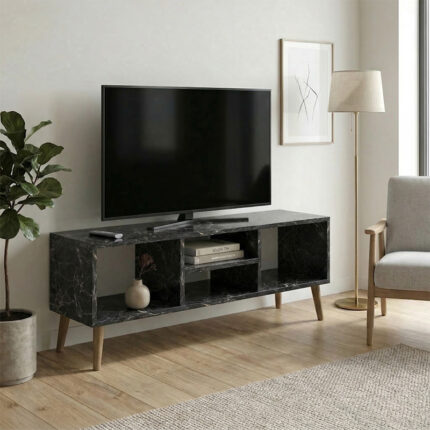 Έπιπλο τηλεόρασης Loren Megapap χρώμα μαύρο εφέ μαρμάρου 120x30x40εκ.