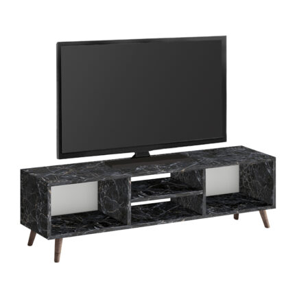 Έπιπλο τηλεόρασης Veyron Megapap χρώμα μαύρο rebab – μαύρο εφέ μαρμάρου 180×32,3×45εκ.