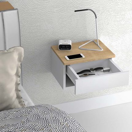 Κομοδίνο επιτοίχιο Mary Megapap χρώμα φυσικό οξιάς – λευκό 40x30x23εκ.