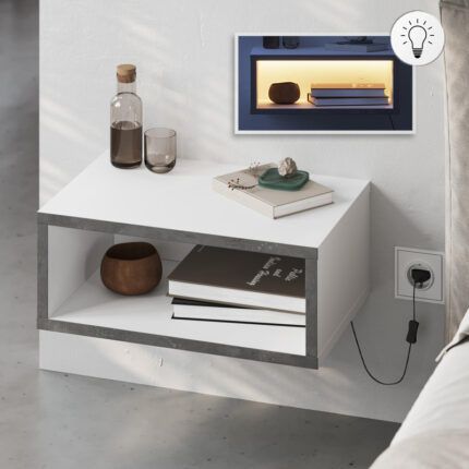 Original price was: 44,00 €.36,90 €Η τρέχουσα τιμή είναι: 36,90 €.Κομοδίνο επιτοίχιο Brik Megapap με LED χρώμα λευκό – γκρι ρετρό 45x30x18εκ.