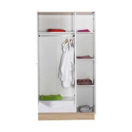 Original price was: 135,00 €.110,00 €Η τρέχουσα τιμή είναι: 110,00 €.Ντουλάπα ρούχων Base Megapap δίφυλλη με συρτάρια σε χρώμα λευκό – sonoma 80x52x198εκ.