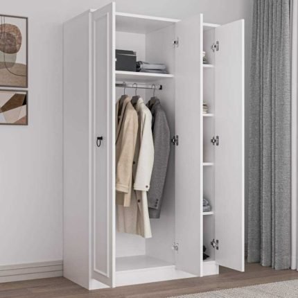 Original price was: 480,00 €.389,00 €Η τρέχουσα τιμή είναι: 389,00 €.Ντουλάπα ρούχων Emily Megapap τρίφυλλη με συρτάρια χρώμα λευκό 105x50x210εκ.