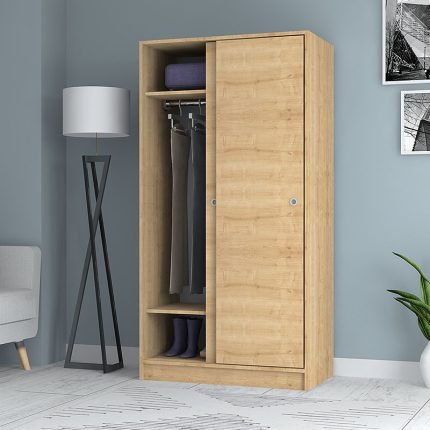 Original price was: 194,00 €.159,00 €Η τρέχουσα τιμή είναι: 159,00 €.Ντουλάπα ρούχων Misra Megapap δίφυλλη συρόμενη χρώμα φυσικό οξιάς 94x52x182εκ.