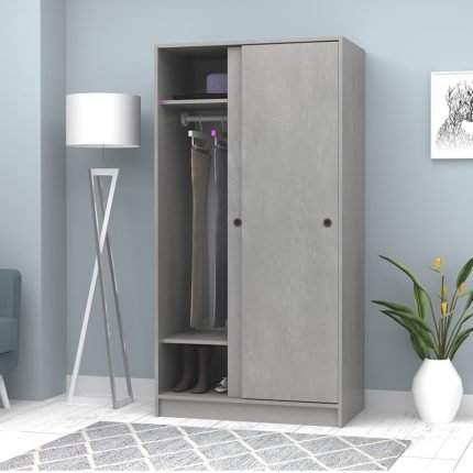 Original price was: 500,00 €.425,00 €Η τρέχουσα τιμή είναι: 425,00 €.Ντουλάπα ρούχων Regio Megapap δίφυλλη συρόμενη χρώμα γκρι σκυροδέματος 120x60x200εκ.