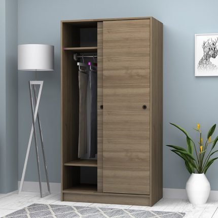 Original price was: 194,00 €.159,00 €Η τρέχουσα τιμή είναι: 159,00 €.Ντουλάπα ρούχων Misra Megapap δίφυλλη συρόμενη χρώμα καρυδί 94x52x182εκ.