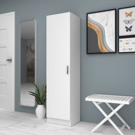 Original price was: 135,00 €.110,00 €Η τρέχουσα τιμή είναι: 110,00 €.Ντουλάπα ρούχων – παπουτσοθήκη Petro Megapap μονόφυλλη χρώμα λευκό 45x38x180εκ.