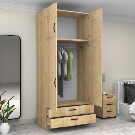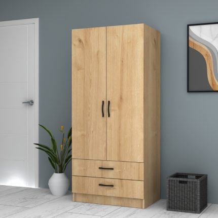 Original price was: 291,00 €.245,00 €Η τρέχουσα τιμή είναι: 245,00 €.Ντουλάπα ρούχων Ricardo Megapap δίφυλλη με πατάρι και συρτάρια χρώμα φυσικό οξιάς 80×51,8×240εκ.