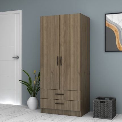 Original price was: 195,00 €.165,00 €Η τρέχουσα τιμή είναι: 165,00 €.Ντουλάπα ρούχων Ricardo Megapap δίφυλλη με συρτάρια χρώμα καρυδί 80×51,8×181εκ.