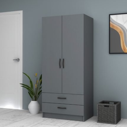 Original price was: 291,00 €.245,00 €Η τρέχουσα τιμή είναι: 245,00 €.Ντουλάπα ρούχων Ricardo Megapap δίφυλλη με συρτάρια χρώμα ανθρακί 80×51,8×181εκ.
