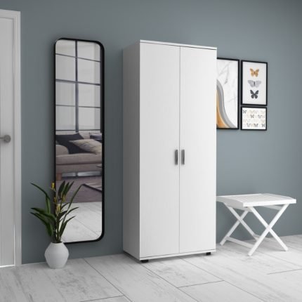 Original price was: 219,00 €.179,00 €Η τρέχουσα τιμή είναι: 179,00 €.Ντουλάπα ρούχων – παπουτσοθήκη Eric Megapap δίφυλλη χρώμα λευκό 76x36x187εκ.