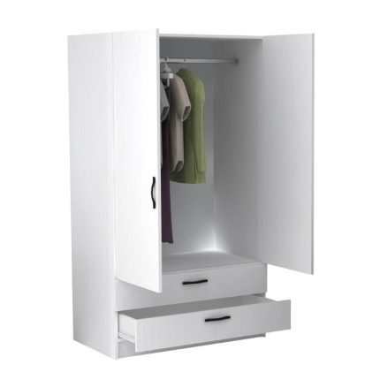 Original price was: 230,00 €.195,00 €Η τρέχουσα τιμή είναι: 195,00 €.Ντουλάπα ρούχων Victoria Megapap δίφυλλη με συρτάρια χρώμα λευκό 100x60x181εκ.