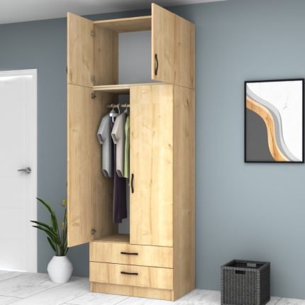 Original price was: 342,00 €.290,00 €Η τρέχουσα τιμή είναι: 290,00 €.Ντουλάπα ρούχων Victoria Megapap δίφυλλη με πατάρι και συρτάρια χρώμα φυσικό οξιάς 100x60x240εκ.