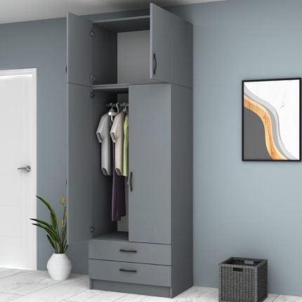 Original price was: 260,00 €.219,00 €Η τρέχουσα τιμή είναι: 219,00 €.Ντουλάπα ρούχων Ricardo Megapap δίφυλλη με πατάρι και συρτάρια χρώμα ανθρακί 80×51,8×240εκ.