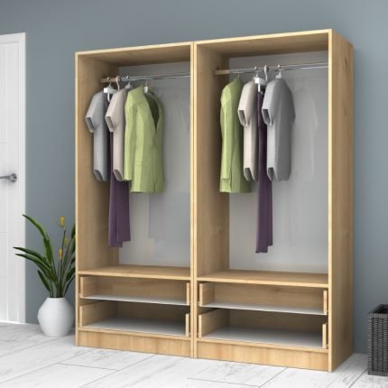 Original price was: 390,00 €.330,00 €Η τρέχουσα τιμή είναι: 330,00 €.Ντουλάπα ρούχων Ricardo Megapap τετράφυλλη με συρτάρια χρώμα φυσικό οξιάς 160×51,8×181εκ.