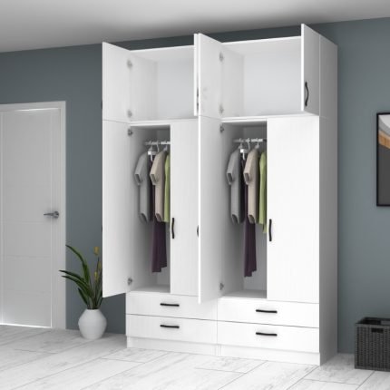 Original price was: 1.036,00 €.880,00 €Η τρέχουσα τιμή είναι: 880,00 €.Ντουλάπα ρούχων Ricardo Megapap εξάφυλλη με πατάρι και συρτάρια χρώμα λευκό 240×51,8×240εκ.