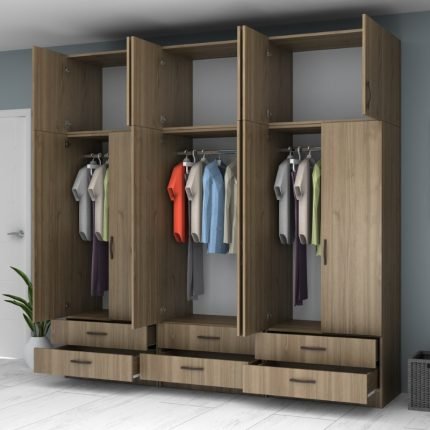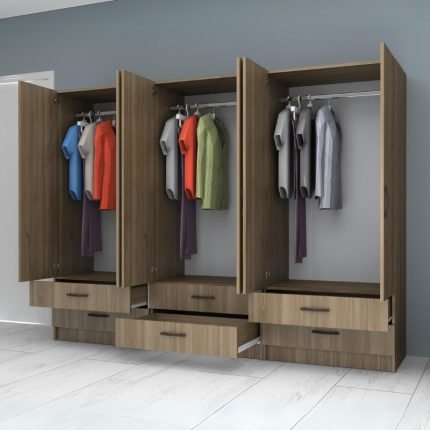 Original price was: 585,00 €.495,00 €Η τρέχουσα τιμή είναι: 495,00 €.Ντουλάπα ρούχων Ricardo Megapap εξάφυλλη με συρτάρια χρώμα καρυδί 240×51,8×181εκ.