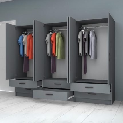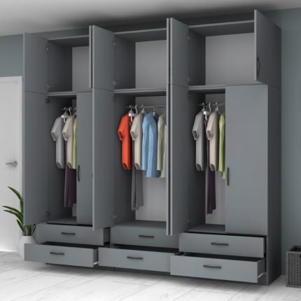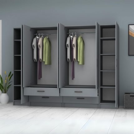 Original price was: 1.036,00 €.880,00 €Η τρέχουσα τιμή είναι: 880,00 €.Ντουλάπα ρούχων Ricardo Megapap εξάφυλλη με συρτάρια χρώμα ανθρακί 240×51,8×181εκ.