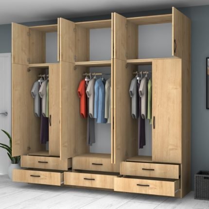 Original price was: 585,00 €.495,00 €Η τρέχουσα τιμή είναι: 495,00 €.Ντουλάπα ρούχων Ricardo Megapap εξάφυλλη με συρτάρια χρώμα φυσικό οξιάς 240×51,8×181εκ.