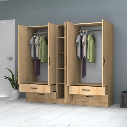 Original price was: 873,00 €.740,00 €Η τρέχουσα τιμή είναι: 740,00 €.Ντουλάπα ρούχων Ricardo Megapap εξάφυλλη με πατάρι και συρτάρια χρώμα φυσικό οξιάς 240×51,8×240εκ.