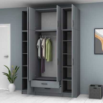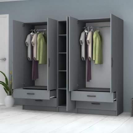 Original price was: 745,00 €.635,00 €Η τρέχουσα τιμή είναι: 635,00 €.Ντουλάπα ρούχων Ricardo Megapap τετράφυλλη με συρτάρια χρώμα ανθρακί 160×51,8×181εκ.