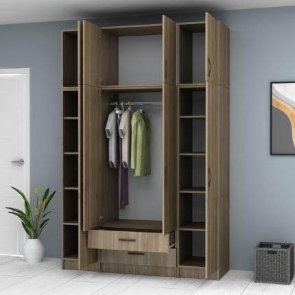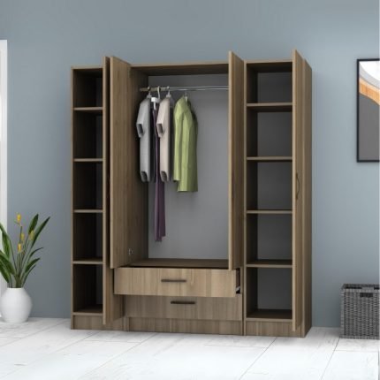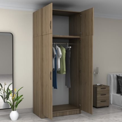 Original price was: 194,00 €.159,00 €Η τρέχουσα τιμή είναι: 159,00 €.Ντουλάπα ρούχων Oryana Megapap τετράφυλλη χρώμα καρυδί 180x62x210εκ.