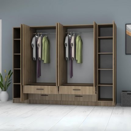 Original price was: 690,00 €.588,00 €Η τρέχουσα τιμή είναι: 588,00 €.Ντουλάπα ρούχων Ricardo Megapap εξάφυλλη με συρτάρια χρώμα καρυδί 240×51,8×181εκ.