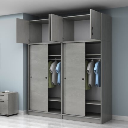 Ντουλάπα ρούχων Regio Megapap τετράφυλλη συρόμενη με πατάρι χρώμα γκρι σκυροδέματος 200x60x240εκ.