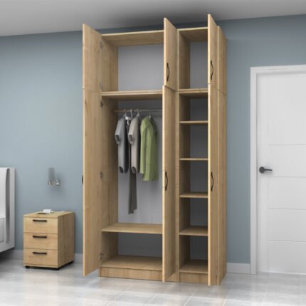 Original price was: 848,00 €.715,00 €Η τρέχουσα τιμή είναι: 715,00 €.Ντουλάπα ρούχων Victoria Megapap τετράφυλλη με πατάρι χρώμα φυσικό οξιάς 200x60x240εκ.